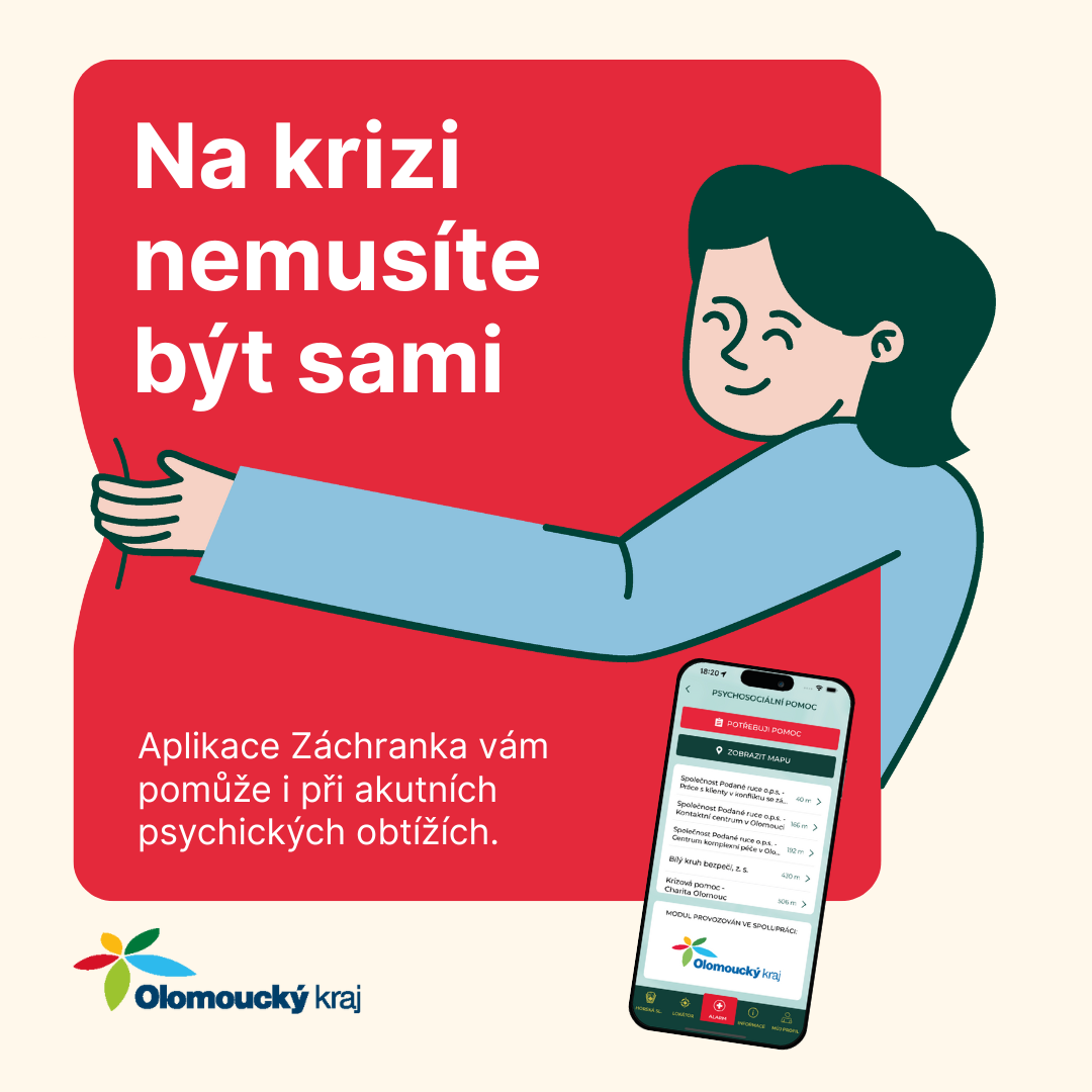 Oblíbená aplikace Záchranka, díky které si mohou lidé z mobilu snadno zavolat první pomoc, obsahuje v Olomouckém kraji nově takzvaný modul Psychosociální pomoc. Ten se zaměřuje na podporu osob, jež se ocitly v náročné psychické situaci.