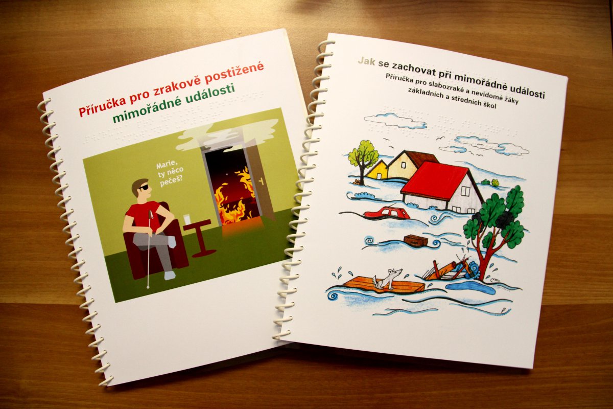 Olomoucký kraj zaplatil výrobu dvou publikací, které zdarma dostanou nevidomí a slabozrací lidé. Knížky jim poradí, jak se zachovat při mimořádných událostech, jako je například požár domu nebo dopravní nehoda. Obě díla obsahují zvlášť zvětšený text a celostránkové obrázky. Na dalších listech jsou navíc vyraženy informace v Braillově písmu, tím jsou knihy naprosto unikátní.