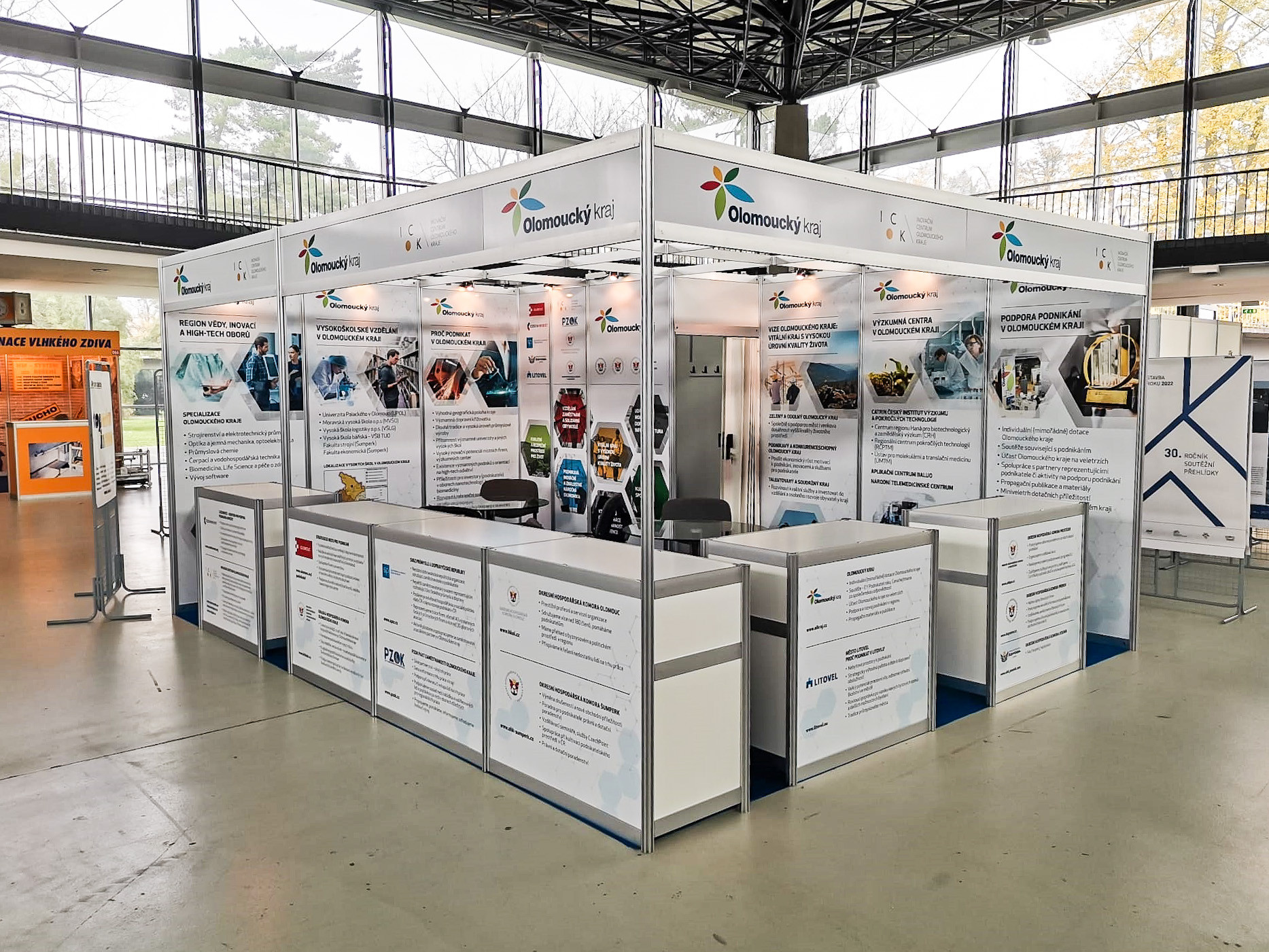 Ve krajském stánku se objeví regionální partneři, mezi které patří například Inovační centrum Olomouckého kraje nebo Krajská hospodářská komora. Představí se agentura CzechInvest, Svaz průmyslu a dopravy ČR nebo města Olomouc a Litovel.
