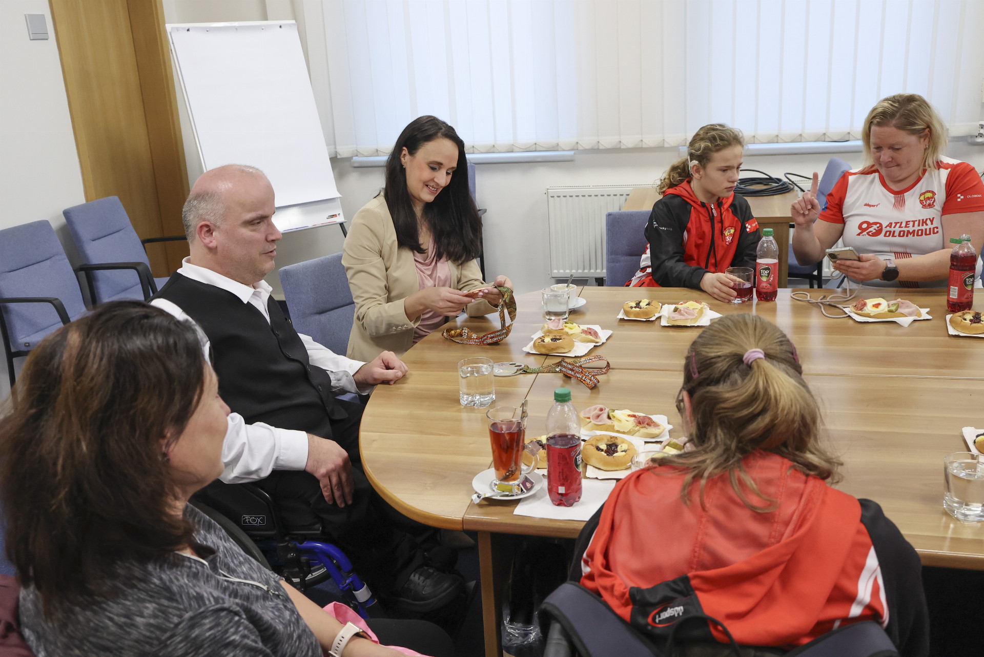 S náměstky pro sport a sociální věci se kromě samotných sportovců sešli i zástupci Atletického klubu Olomouc – místopředseda Drahoslav Dočkal, trenérka i reprezentantka Eva Kacanu a Lenka Hornová, neslyšící trenérka a zároveň atletka.