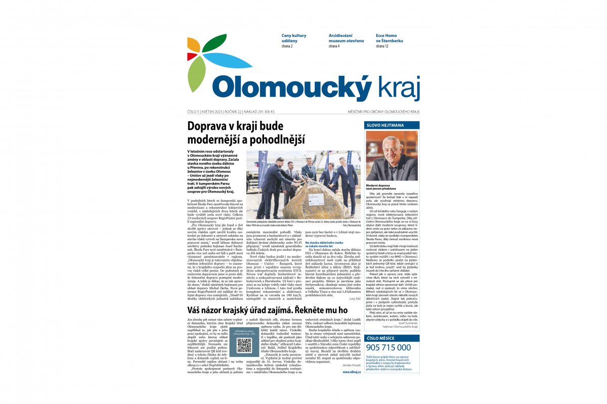 V novinách si můžete přečíst také o tom, komu jsme udělili krajské ceny Cenu za přínos v oblasti kultury nebo jak vypadá zrekonstruované Arcidiecézní muzeum v Olomouci. Také vás pozveme do lázní v Olomouckém kraji, které zahájily svou lázeňskou sezónu.