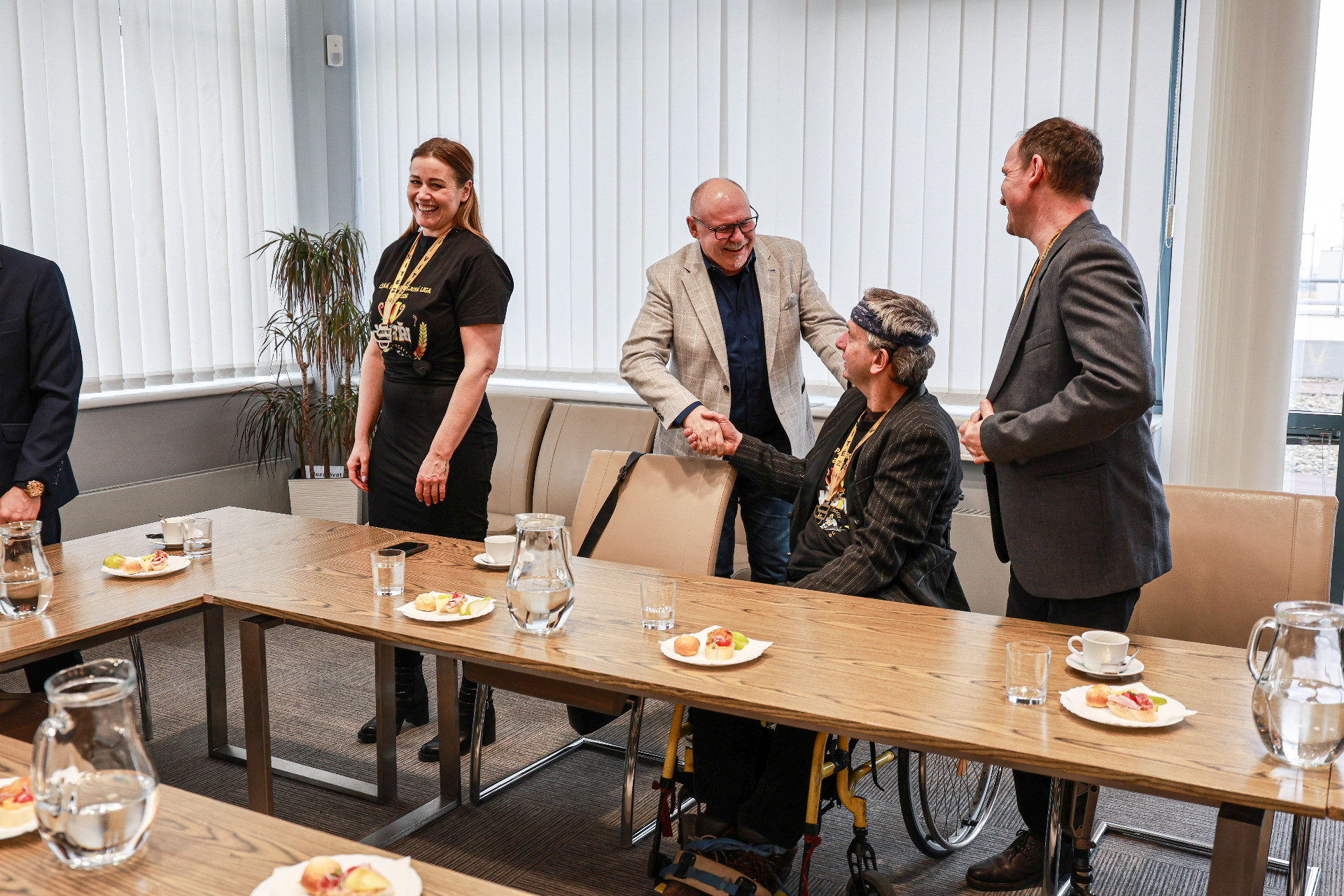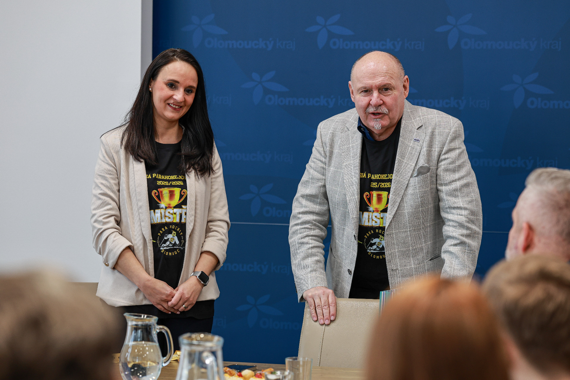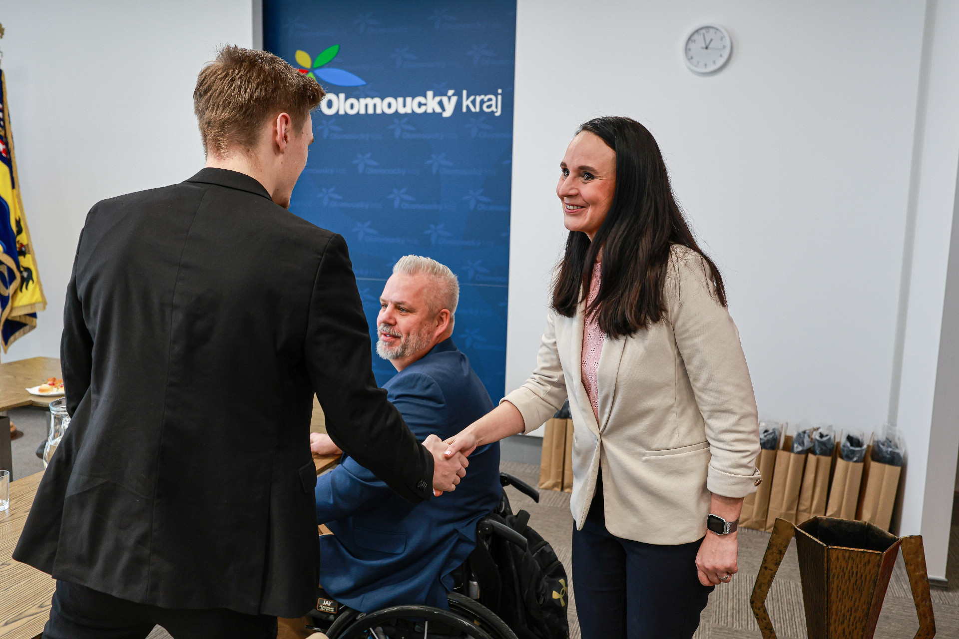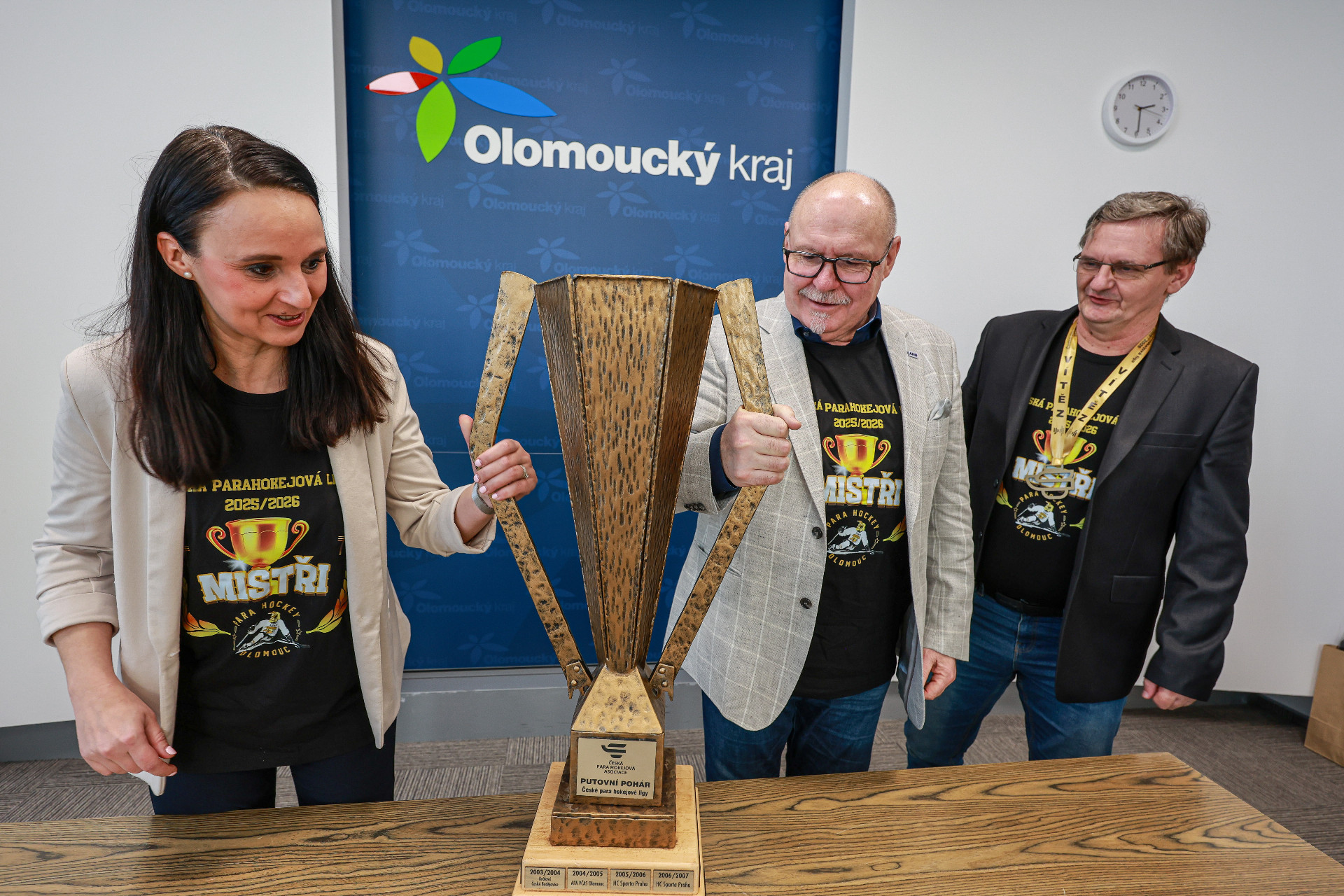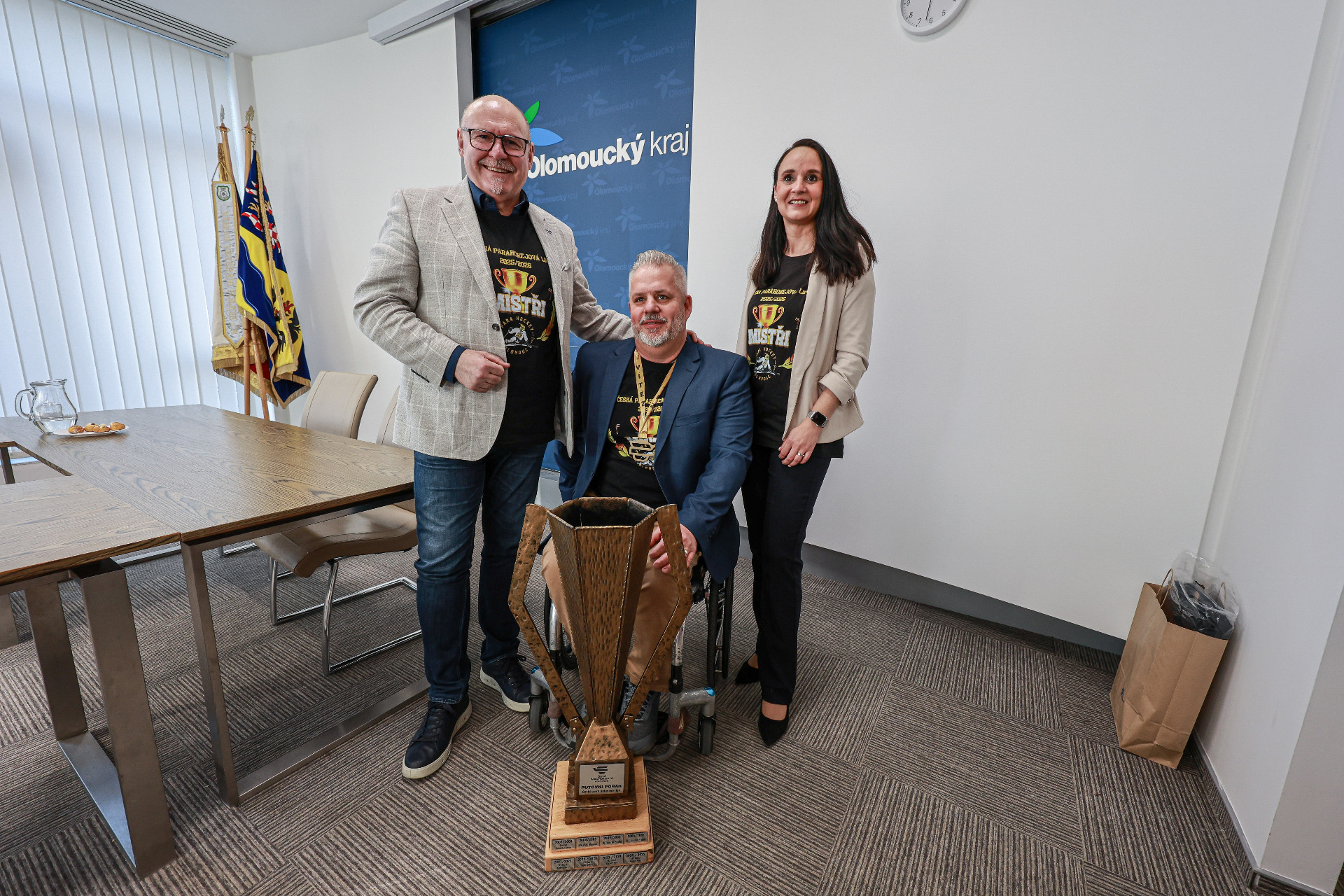 Návštěva členů olomouckého týmu parahokejistů se na hejtmanství v pondělí 26. ledna nesla v přátelském duchu. Sportovci se zde setkali s hejtmanem Olomouckého kraje Ladislavem Oklešťkem a jeho náměstkyní pro oblast kultury a sportu Monikou Hryzbilovou.