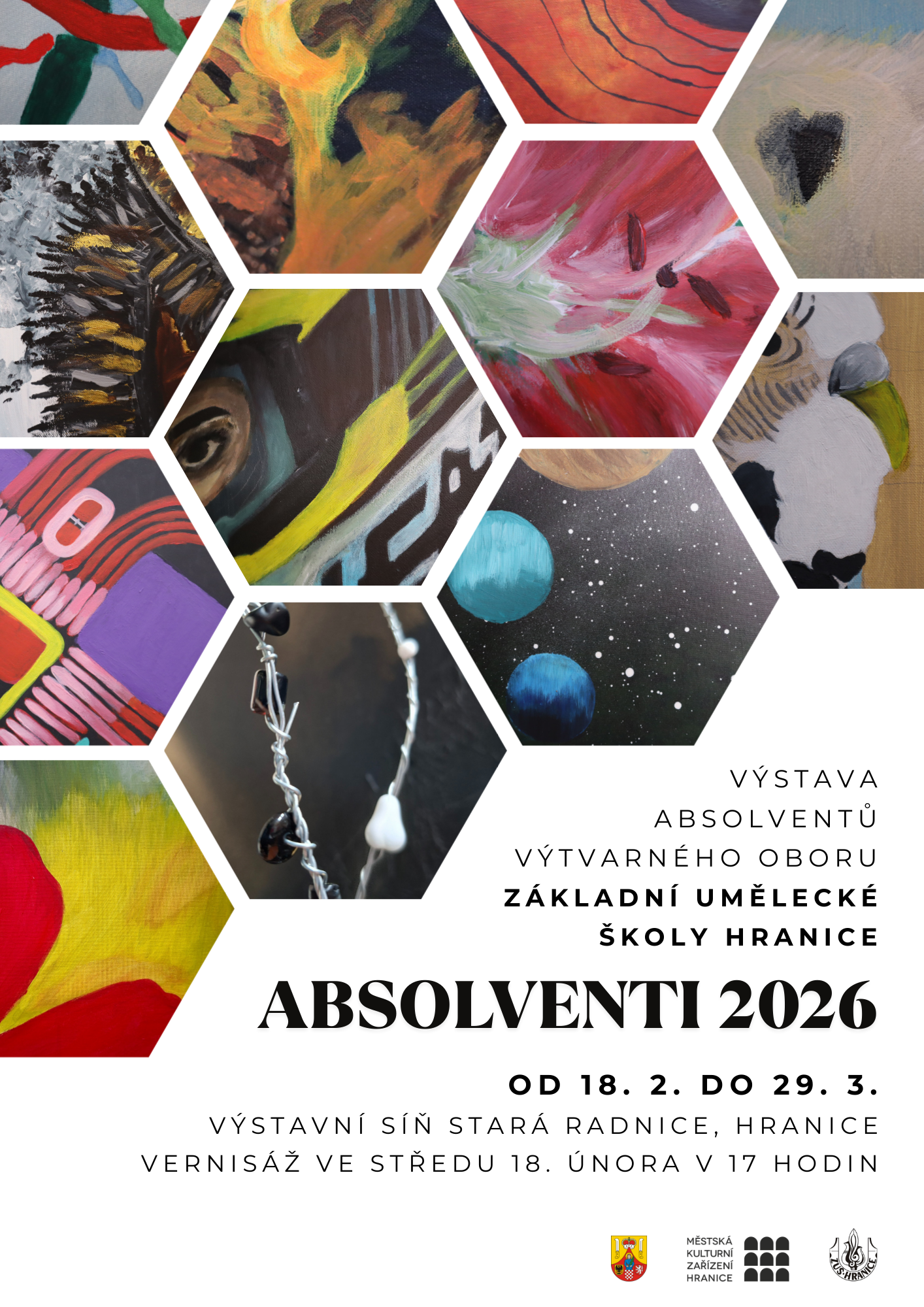 Ve Velkém sále Staré radnice budou prezentovat své závěrečné práce absolventi I. a II. stupně výtvarného oboru Základní umělecké školy Hranice. Těšit se můžete na obrazy malované převážně akrylem.