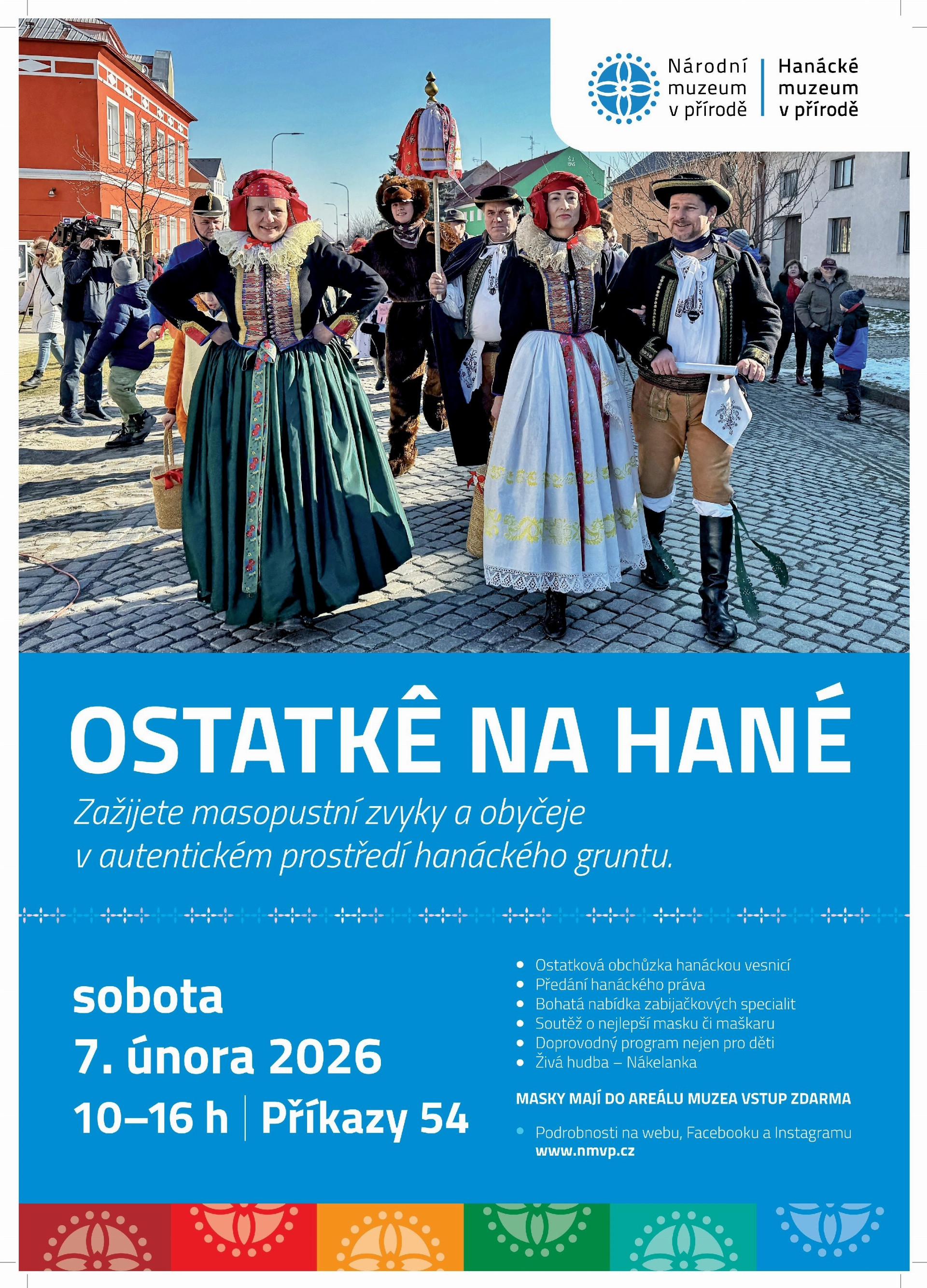 Hanácké muzeum v přírodě v Příkazích bude v sobotu 7. února otevřeno od 10 do 16 hodin. O hudební doprovod se postará Nákelanka a masky mají vstup zdarma! Více informací najdete na webu a sociálních sítích muzea.