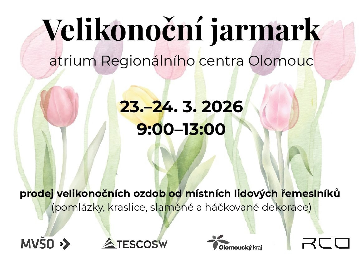 Tradiční velikonoční jarmark v Regionálním centru Olomouc na Jeremenkově ulici se letos bude konat ve dnech 23. a 24. března. Na trzích budou mimo jiné prezentovány výsledky terapeutických činností uživatelů sociálních služeb poskytovaných příspěvkovými organizacemi Olomouckého kraje. Klasické velikonoční pomlázky a kraslice doplní slaměné či háčkované dekorace, velikonoční pečivo a cukroví a další pochutiny či originální nápady. Návštěvníci budou vítáni po oba dva dny, vždy od 9 do 13 hodin.